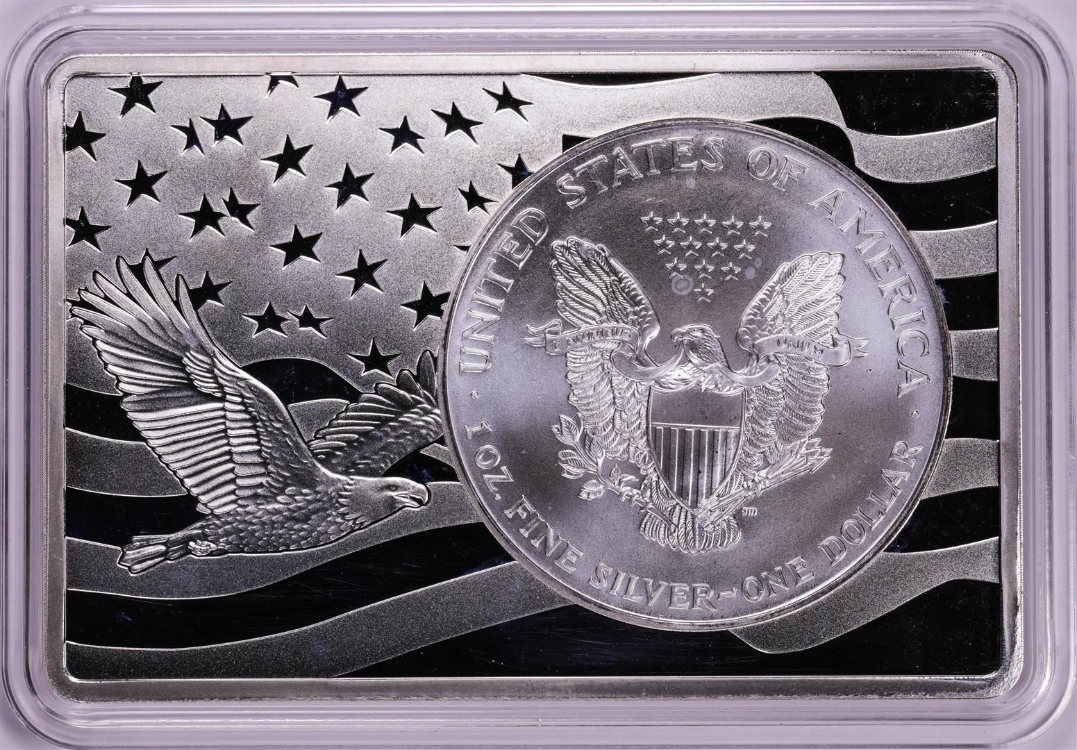 One 1996 $1 American Silver Eagle Coin & 2oz Silver Bar Set.