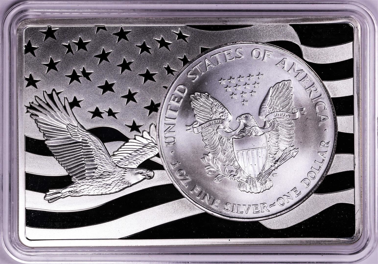 One 1996 $1 American Silver Eagle Coin & 2oz Silver Bar Set.