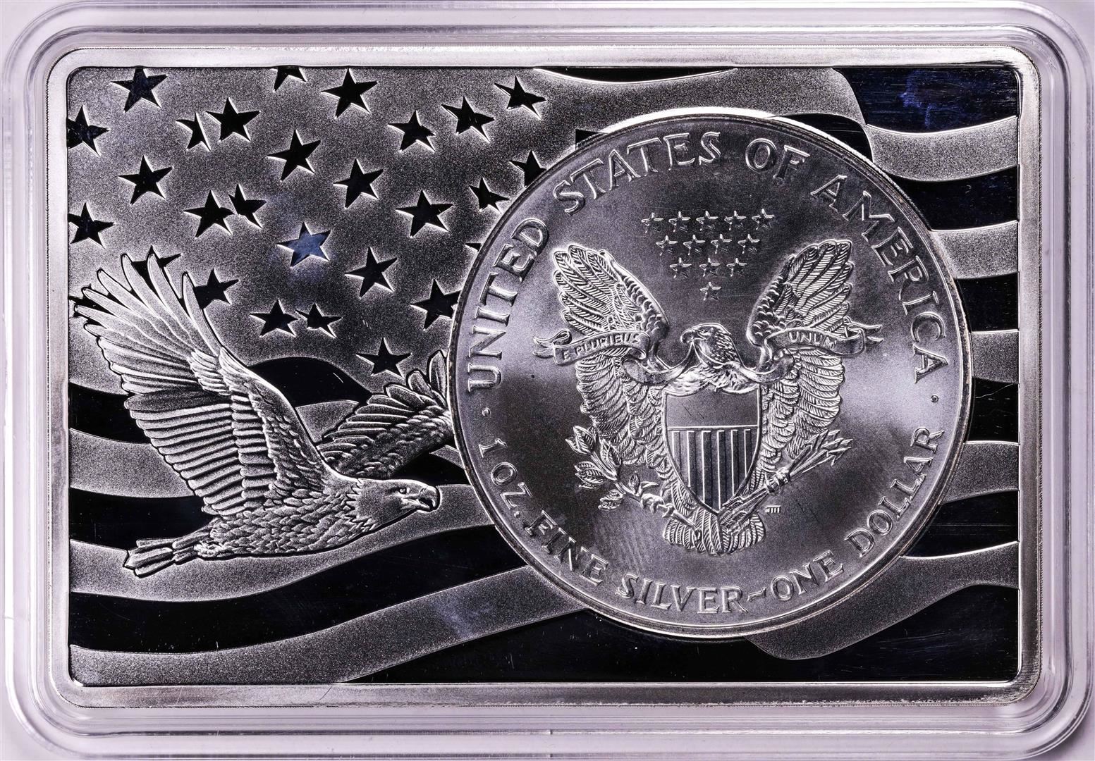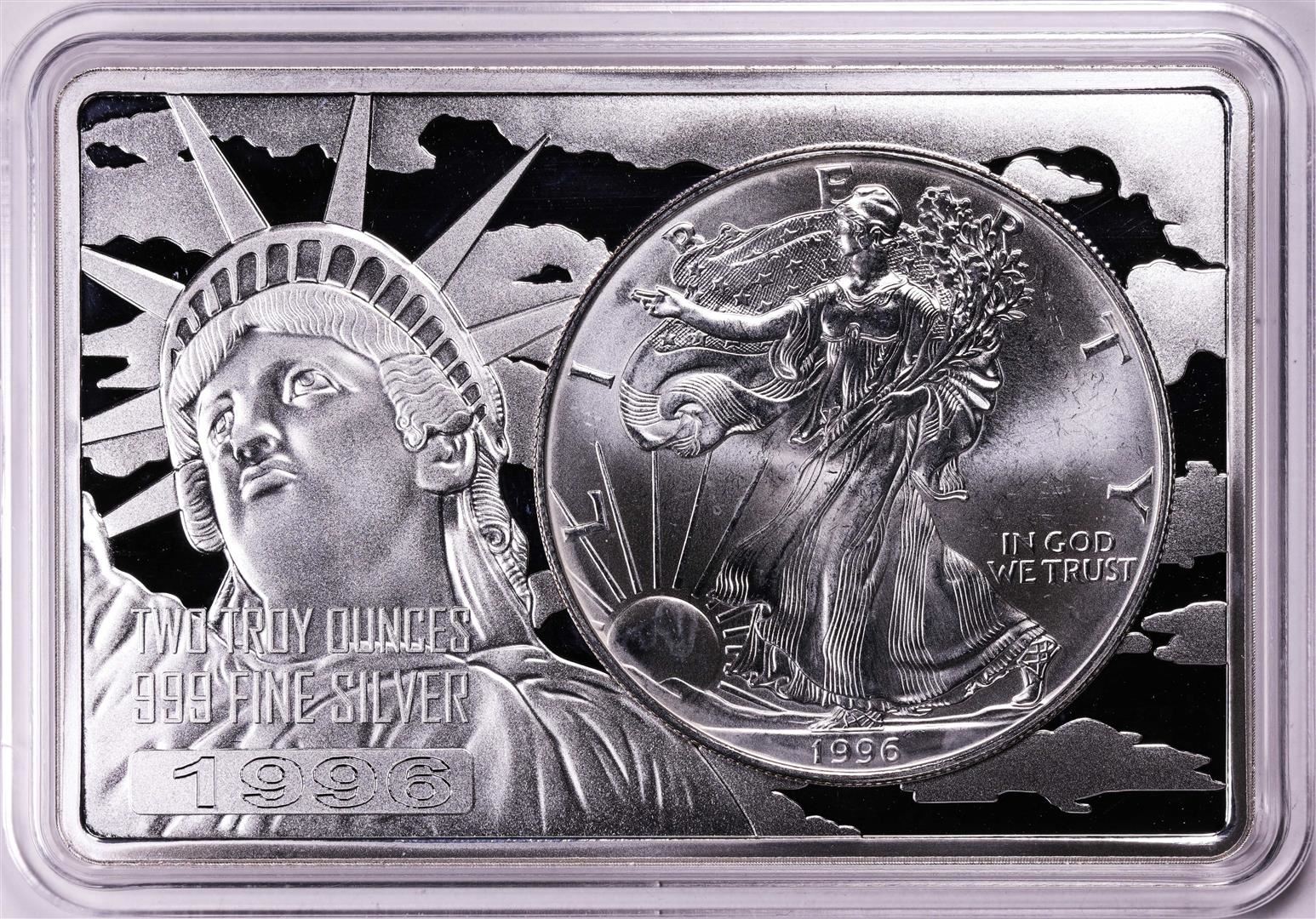 One 1996 $1 American Silver Eagle Coin & 2oz Silver Bar Set.