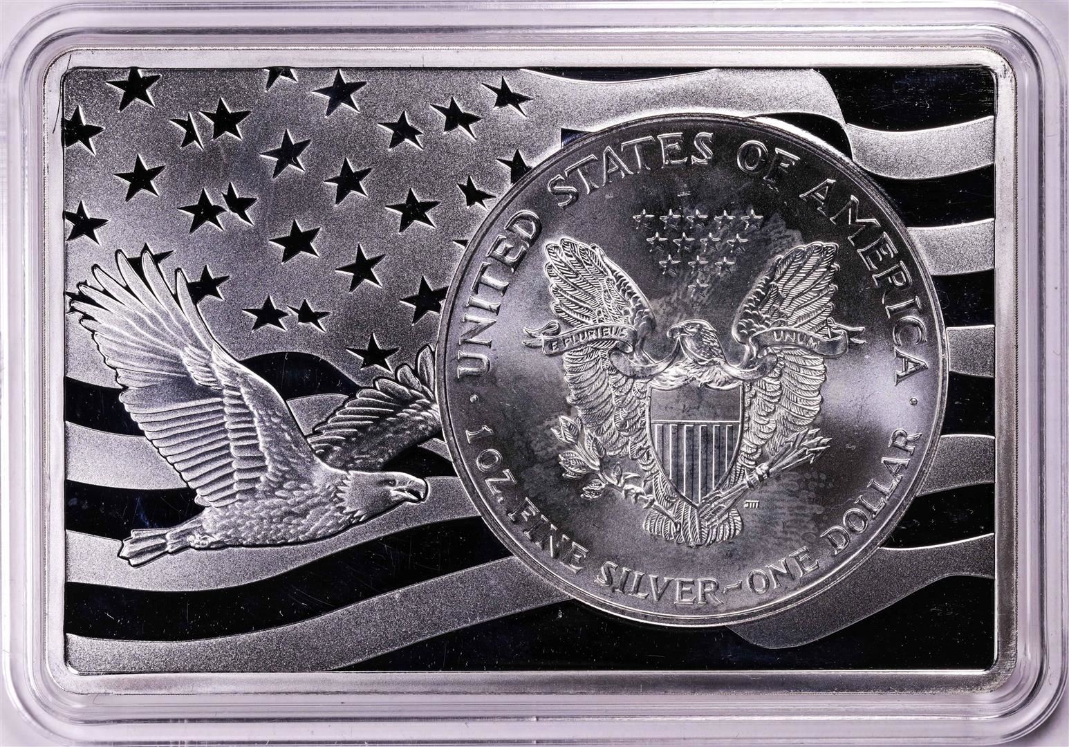 One 1996 $1 American Silver Eagle Coin & 2oz Silver Bar Set.