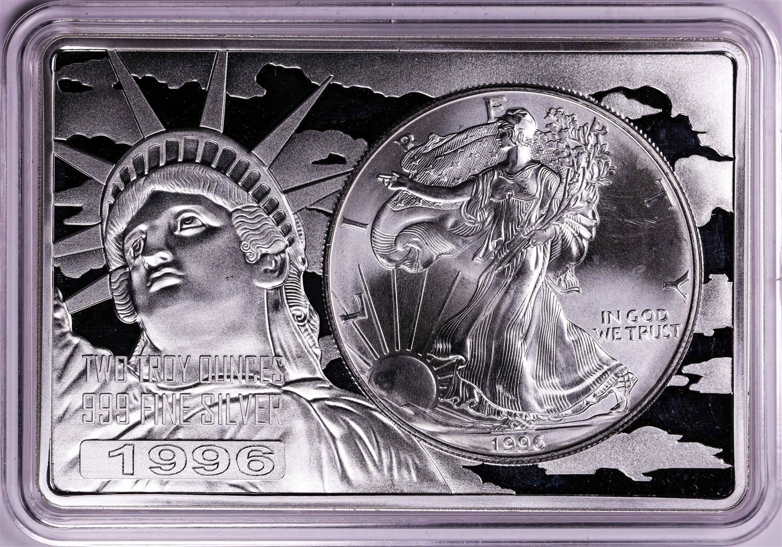 One 1996 $1 American Silver Eagle Coin & 2oz Silver Bar Set.