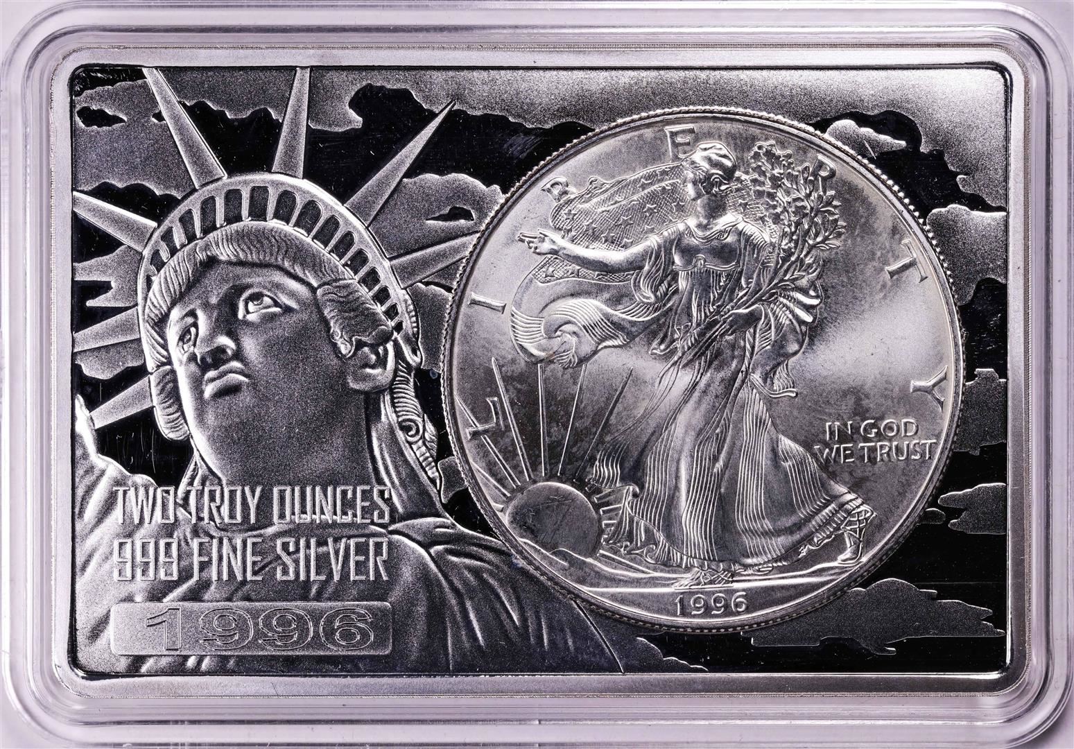 One 1996 $1 American Silver Eagle Coin & 2oz Silver Bar Set.