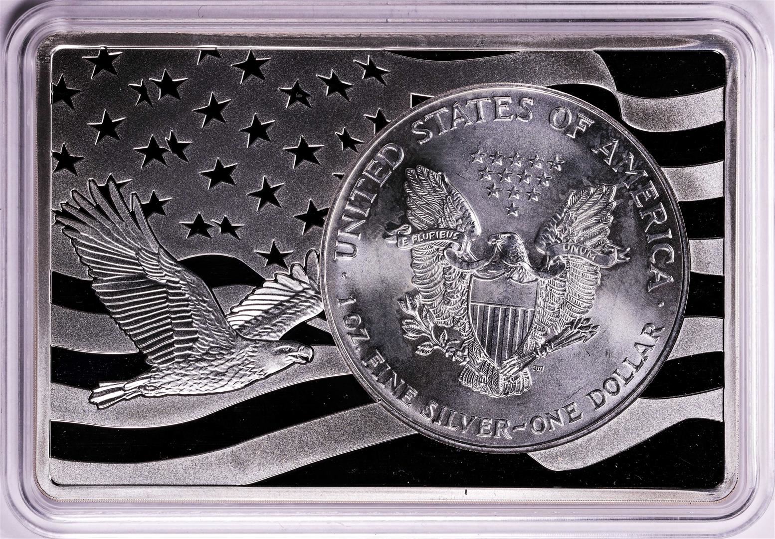 One 1996 $1 American Silver Eagle Coin & 2oz Silver Bar Set.