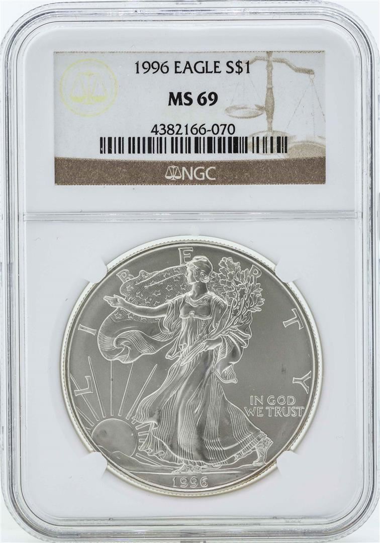 One 1996 $1 American Silver Eagle Coin NGC MS69. NGC Certified.