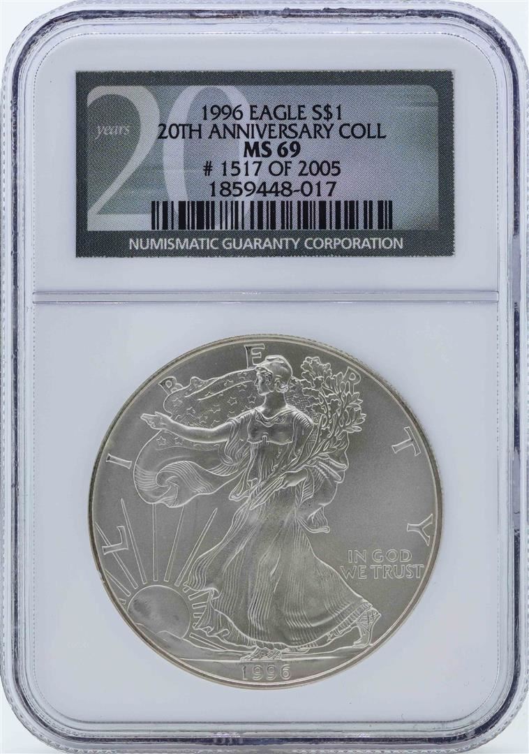 One 1996 $1 American Silver Eagle Coin NGC MS69. NGC Certified.