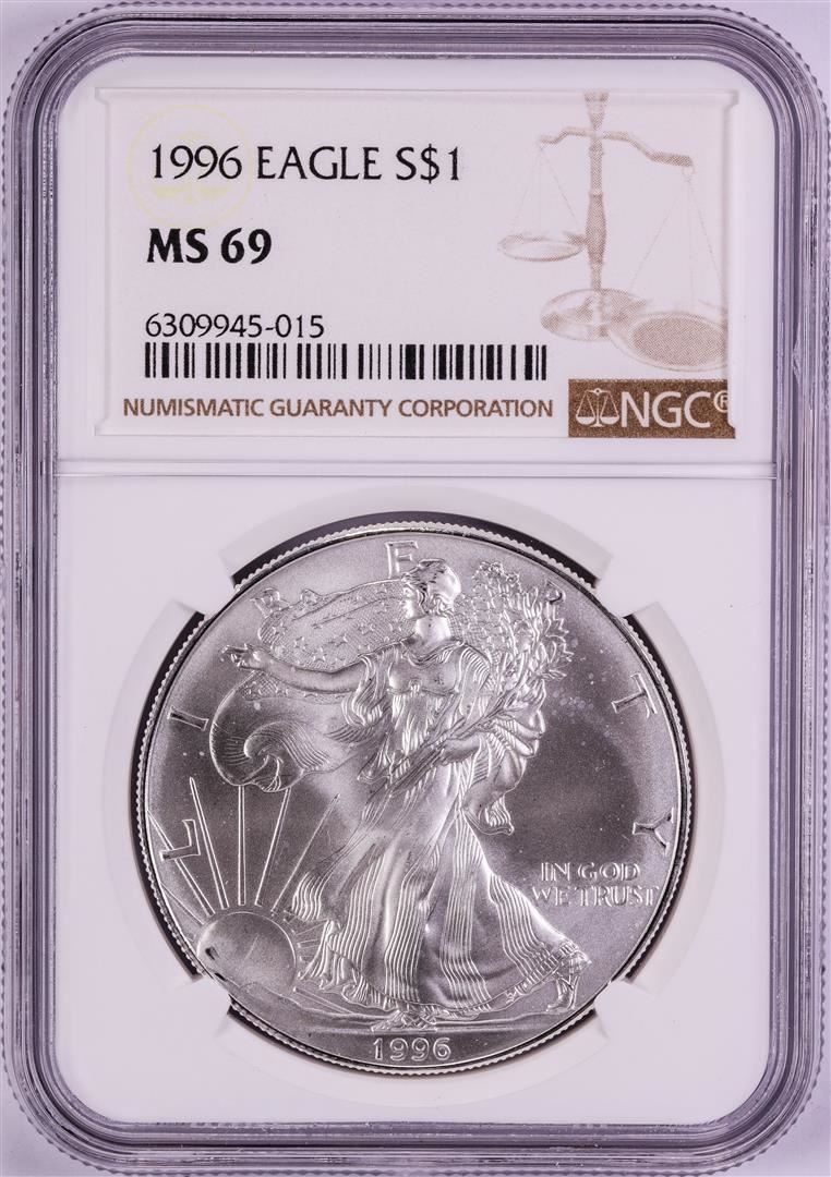 One 1996 $1 American Silver Eagle Coin NGC MS69. NGC Certified.