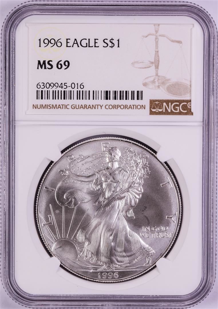 One 1996 $1 American Silver Eagle Coin NGC MS69. NGC Certified.