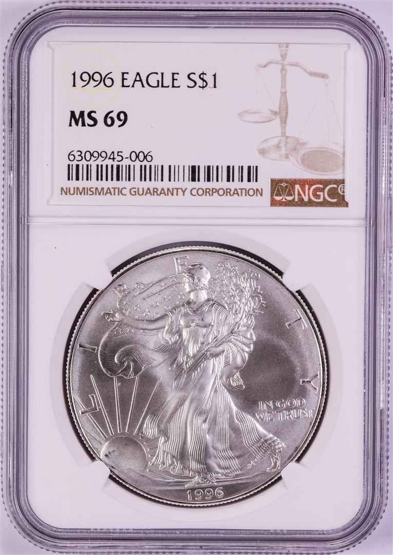One 1996 $1 American Silver Eagle Coin NGC MS69. NGC Certified.