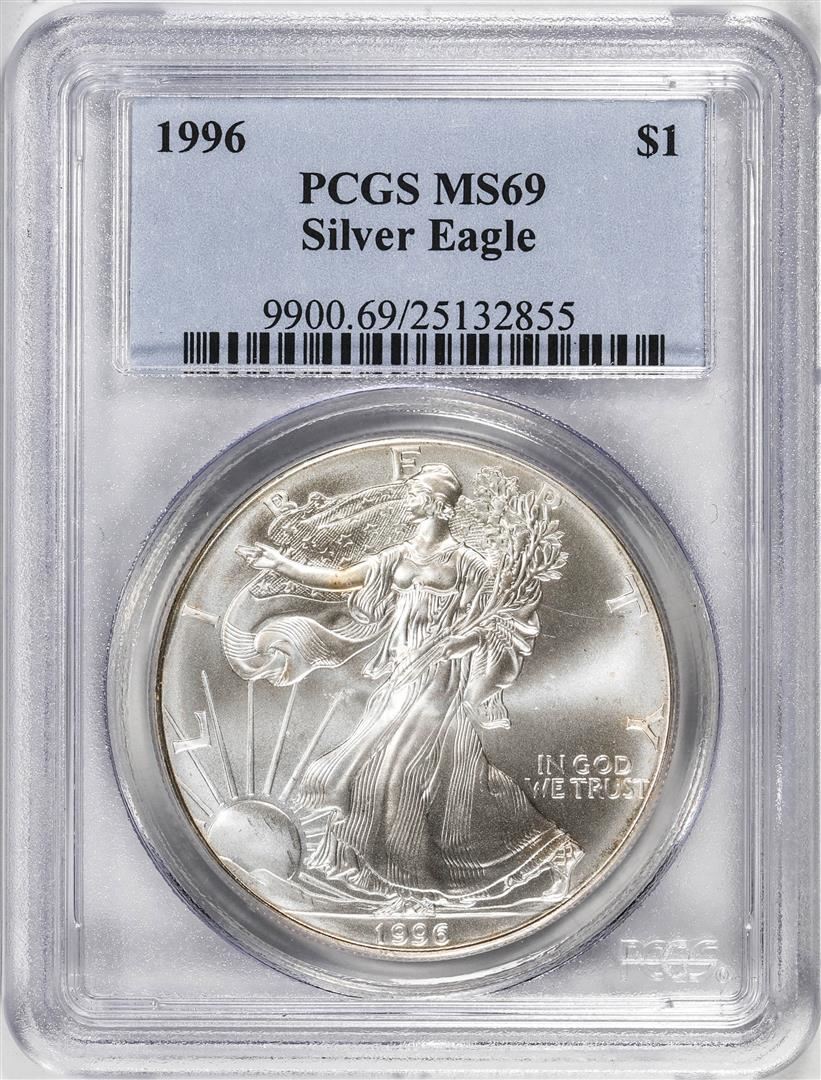 One 1996 $1 American Silver Eagle Coin PCGS MS69. PCGS Graded.