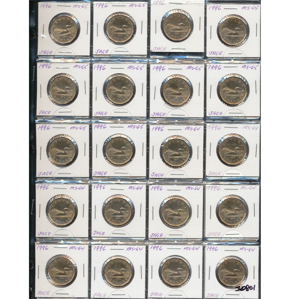 1996 $1 Loon BU Partial Roll Lot; includes 1996(25) pieces all in 2x2's lustrous MS63 to MS65. Also includes 1 Proof issue. A nice lot that should be inspected.