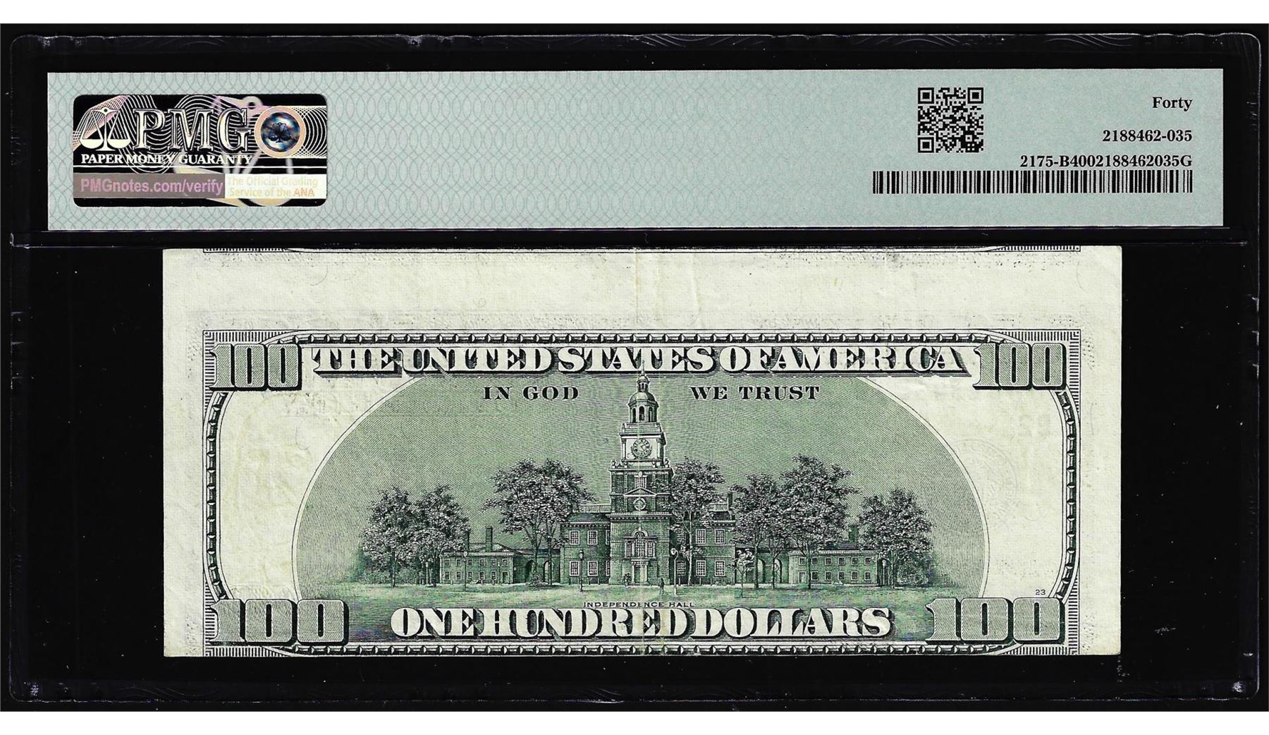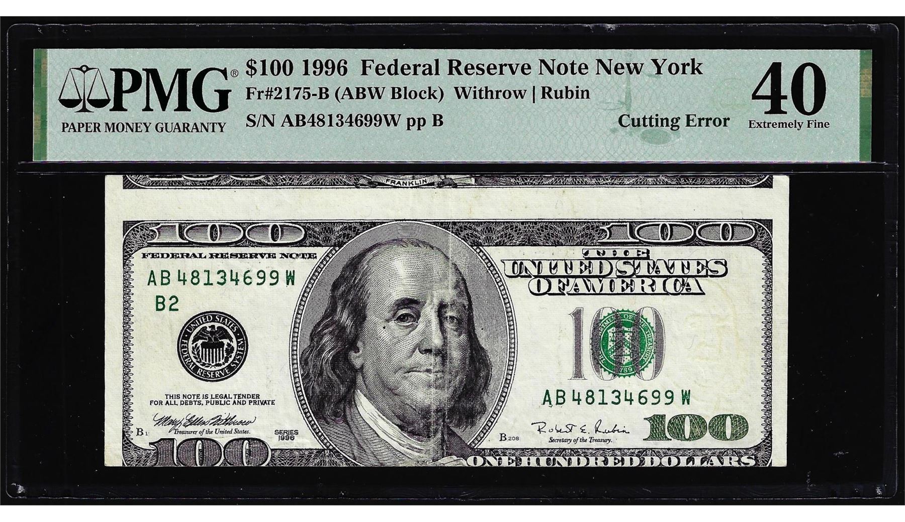 1996 $100 Federal Reserve Cutting Error Note New York Fr.2175-B PMG Extremely Fine 40