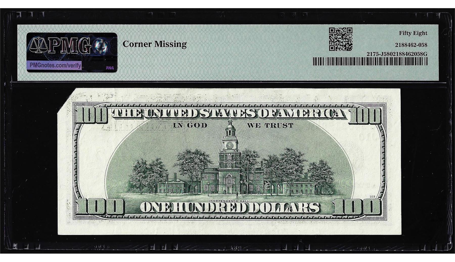 1996 $100 Federal Reserve Fold Over Error Note Fr.2175-J PMG Choice About Unc 58