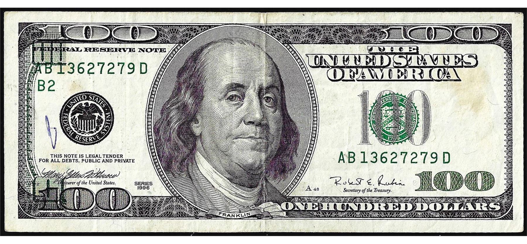 One 1996 $100 Federal Reserve Note Full Offset Error.