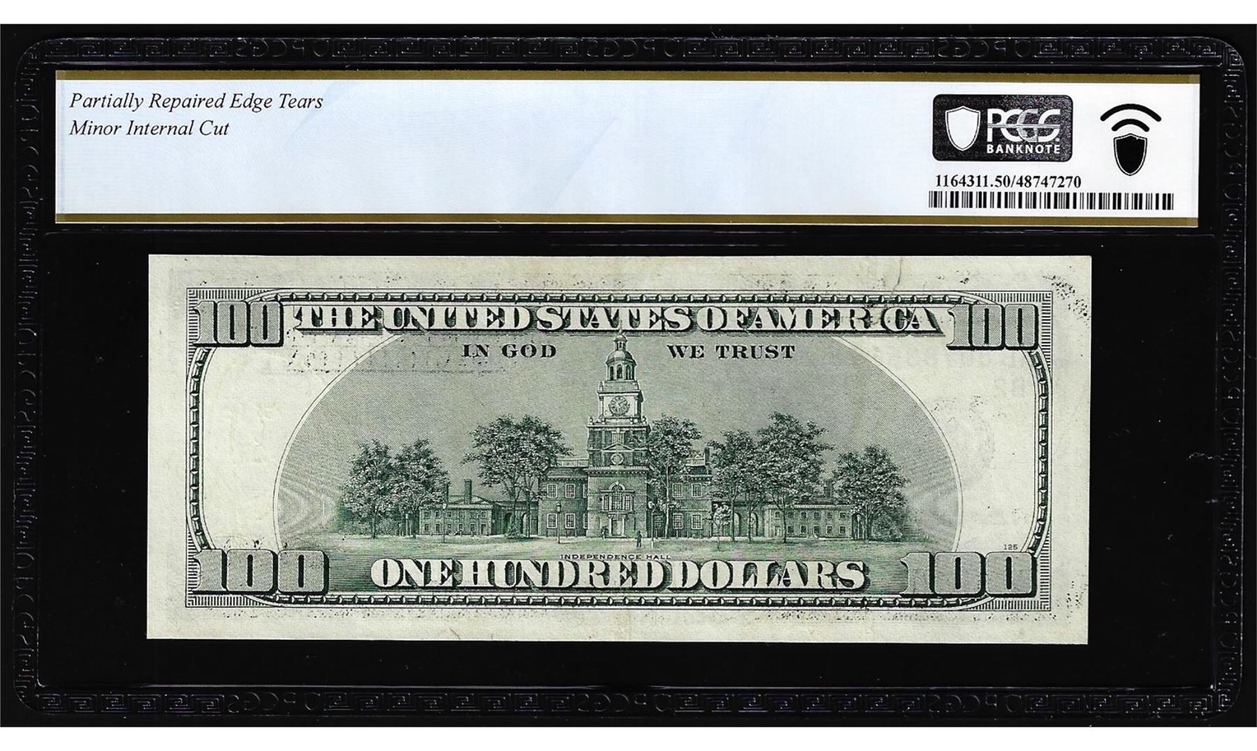 1996 $100 Federal Reserve Note Minor Ink Smear Error PCGS About Unc 50 Details