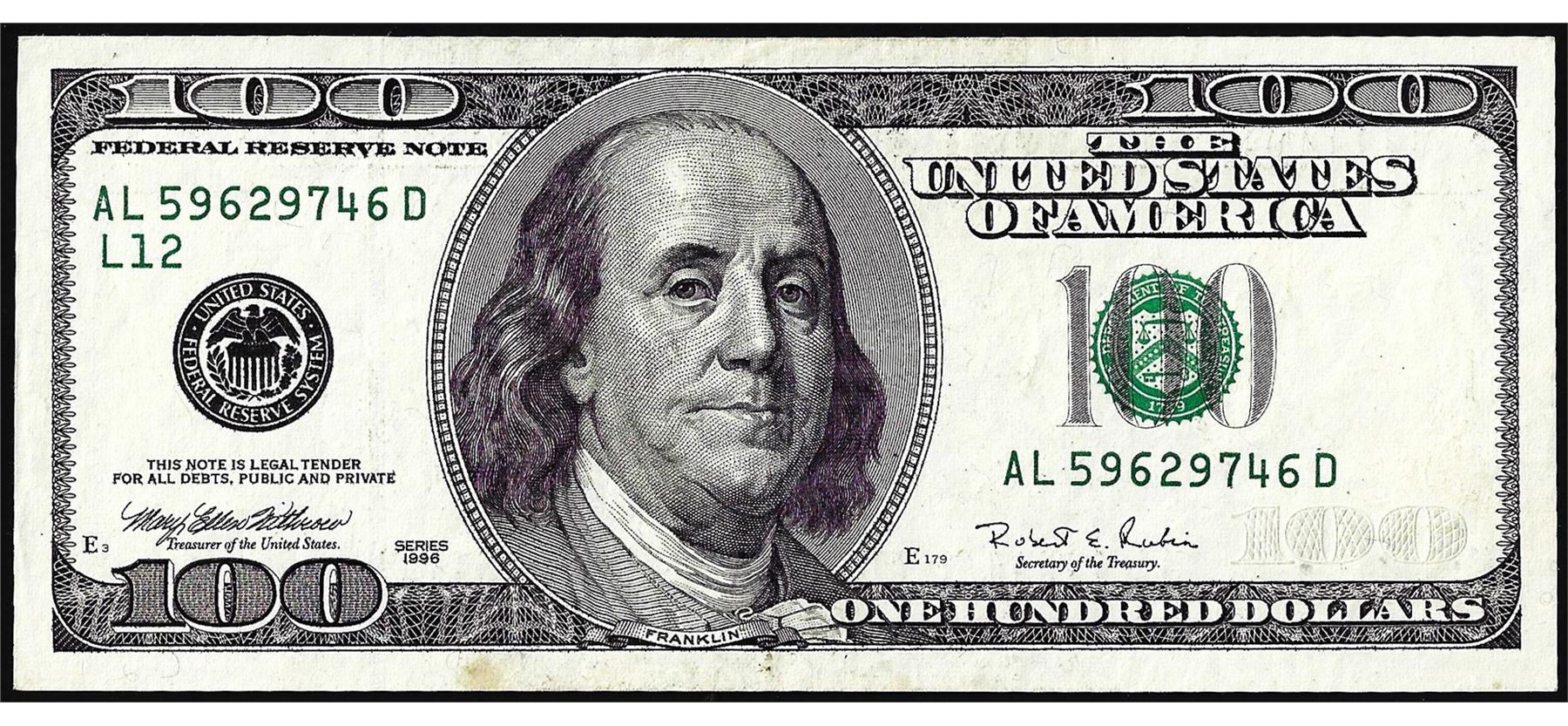 1996 $100 Federal Reserve Note Numeric Inking Error Missing Color Shifting Counter Ink