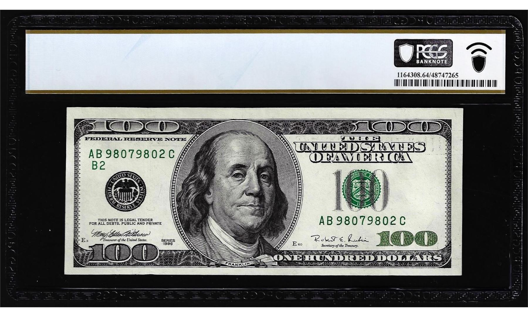 1996 $100 Federal Reserve Note Partial Matte Offset Error PCGS Choice Unc 64PPQ
