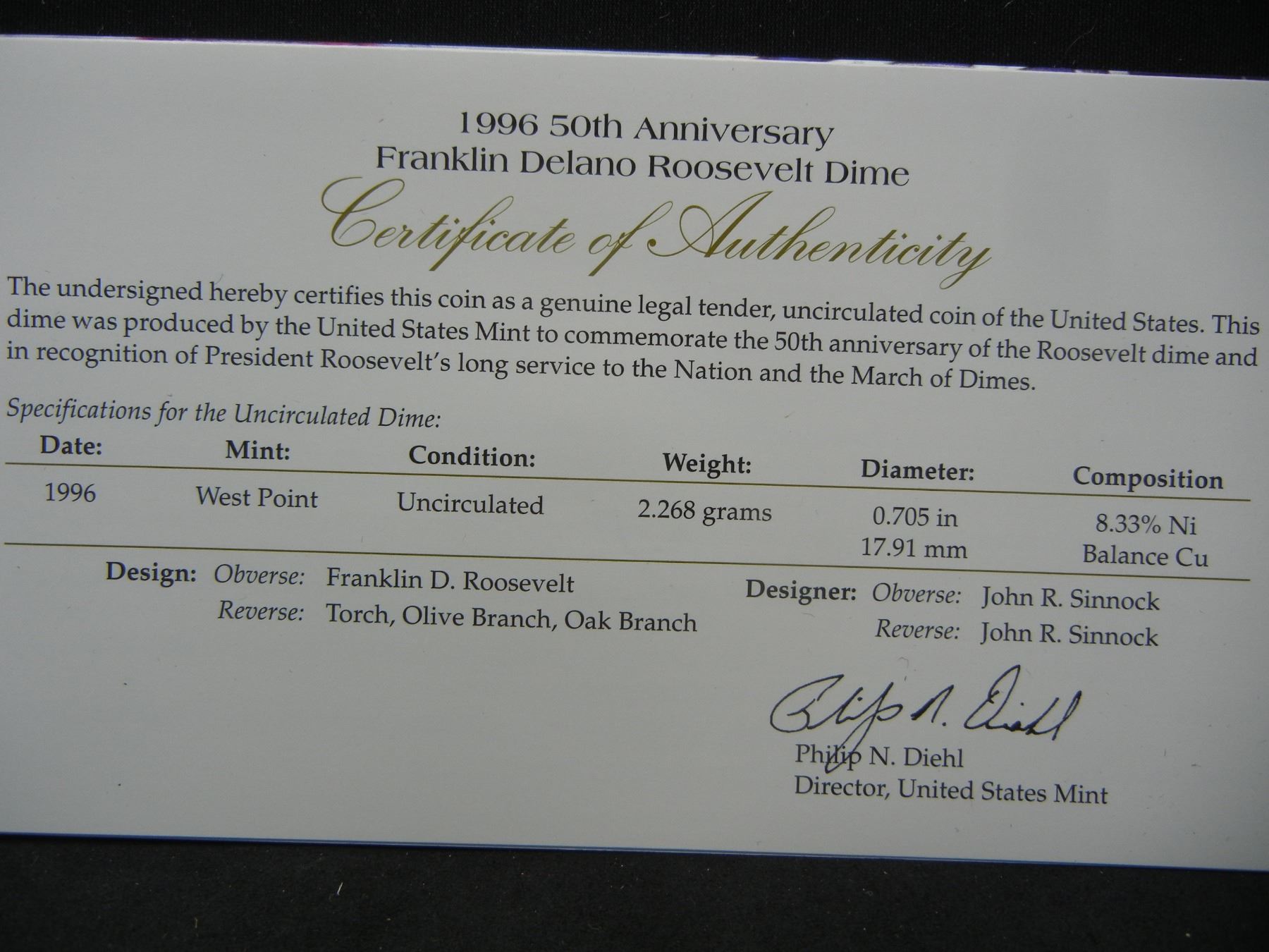 1996 11-Coin United States Mint Set, Includes 1996-W Dime, With Original Gov't Packaging & COA.