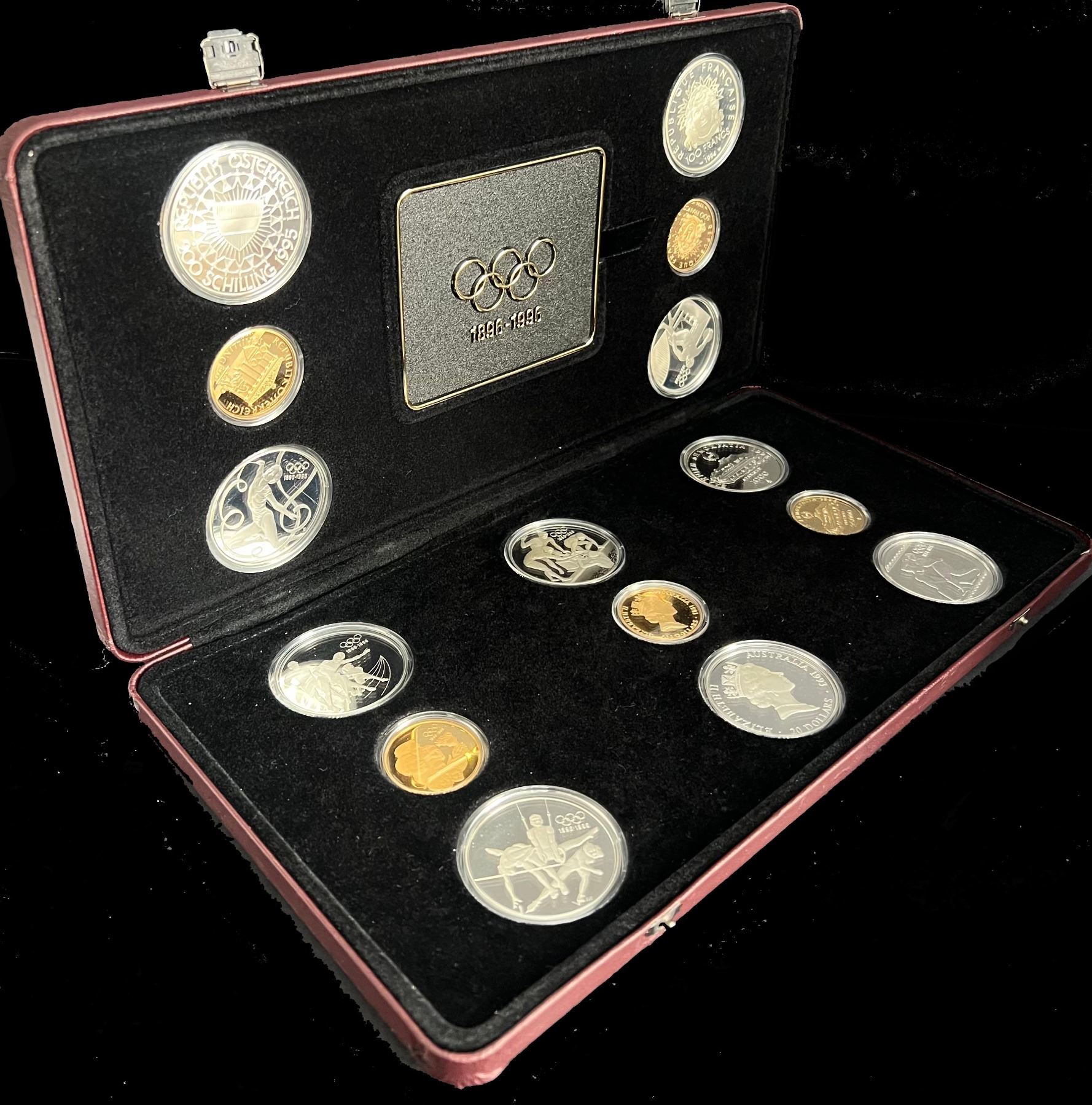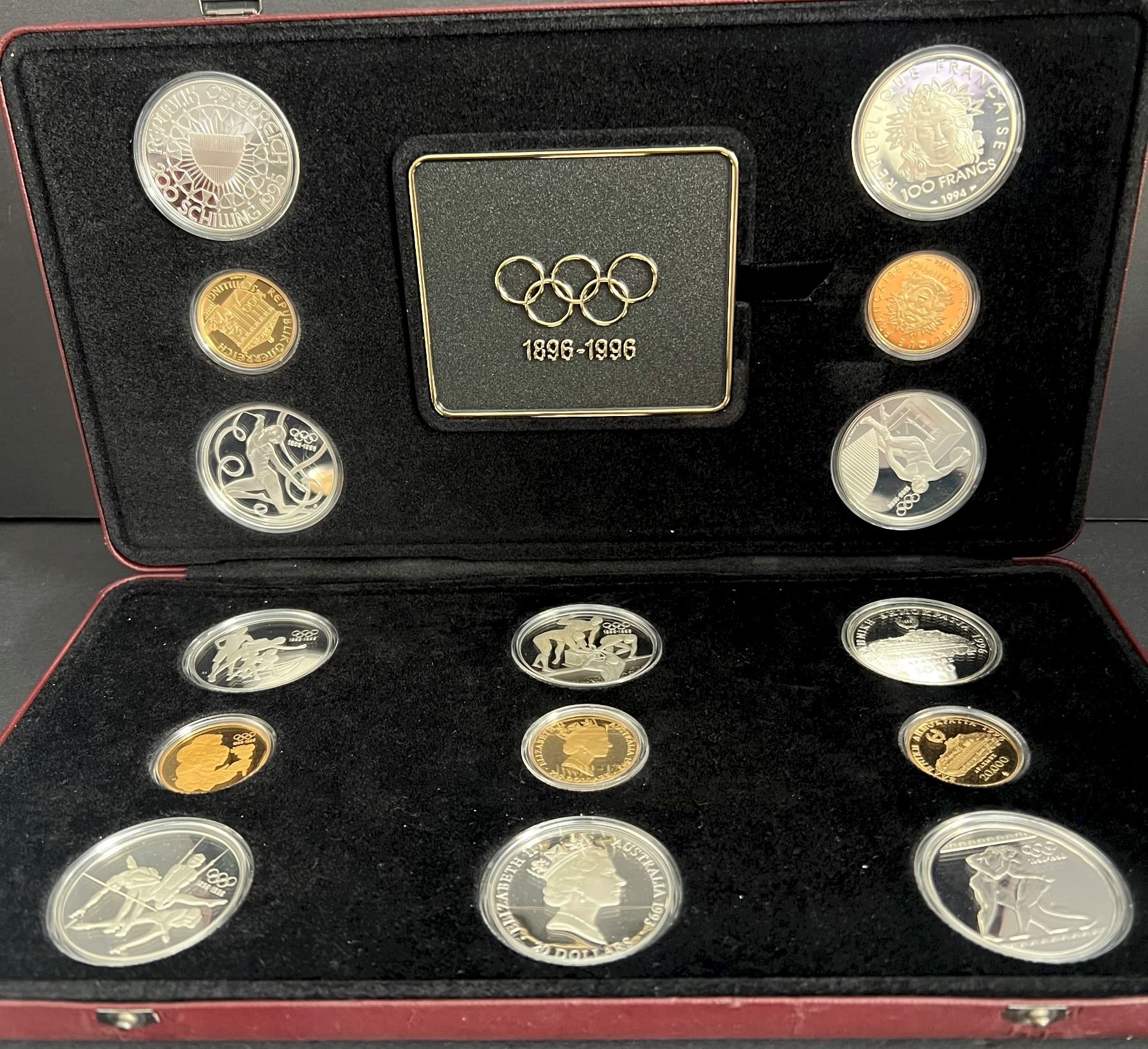 1996 $15 100th Anniversary of the Olympic Movement Five Mint those of Canada, Australia, France, Austria and Greece, participated by each issuing one gold and two silver coins over a five year period. The total collection comprises five gold and ten silver coins.