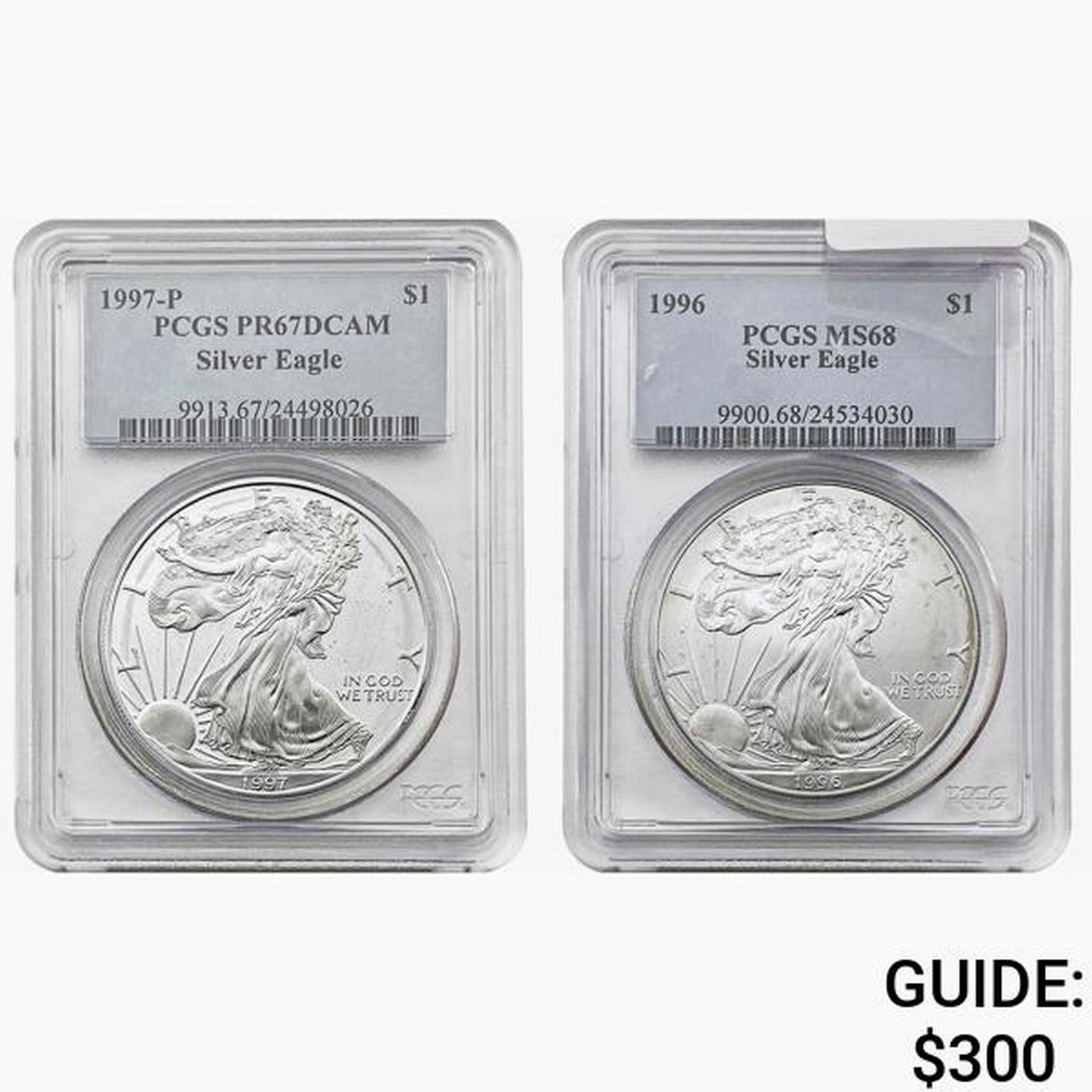 1996-1997-P [2] $1 ASE 1 OZ PCGS MS67-68 DCAM