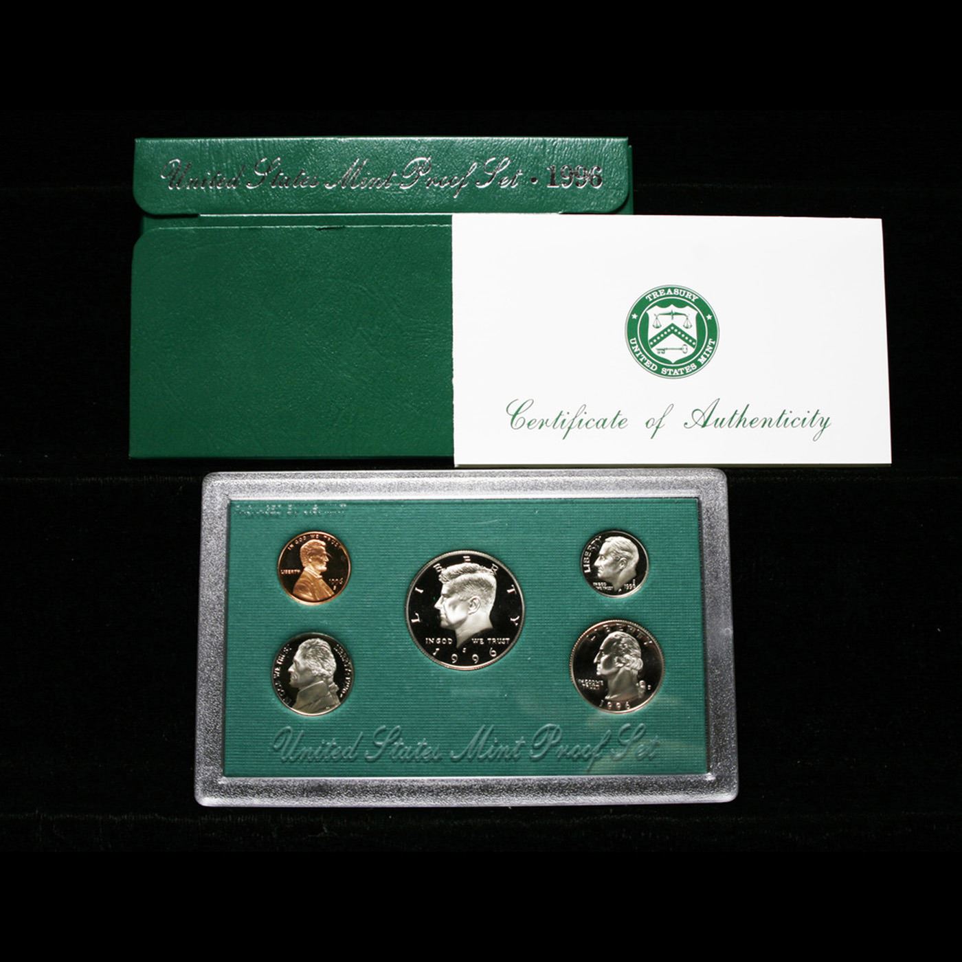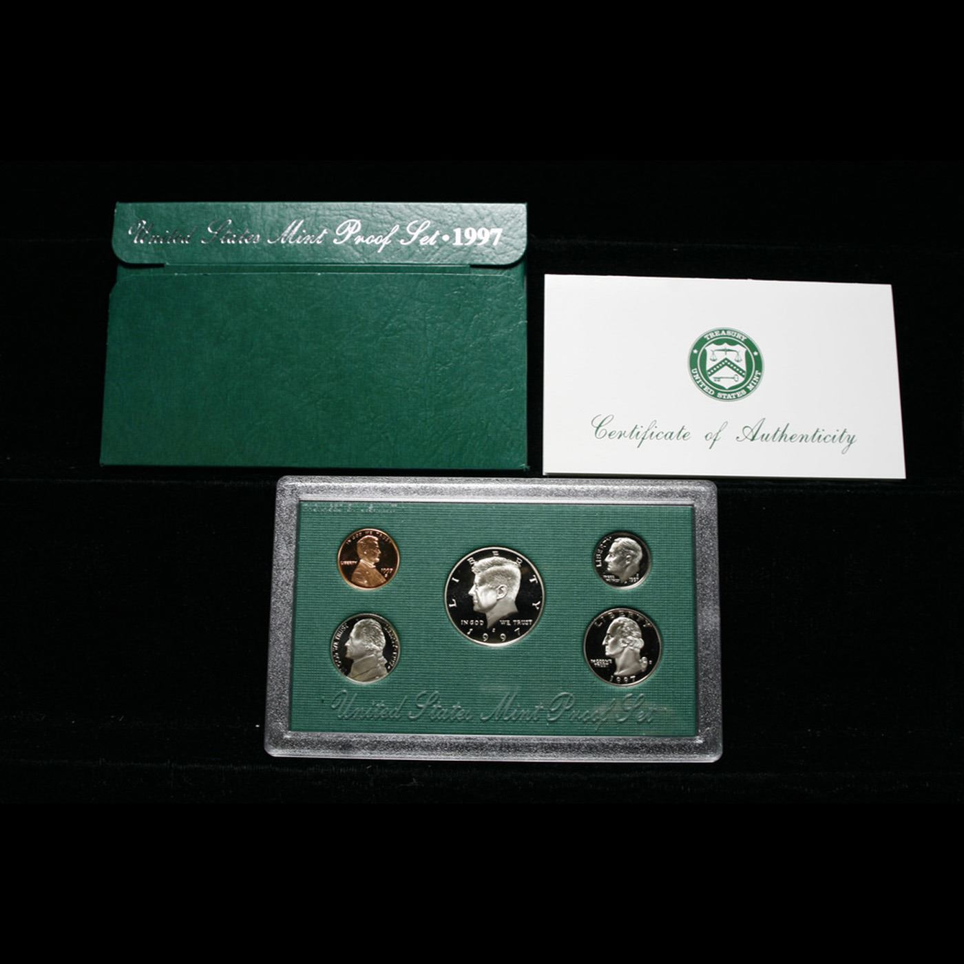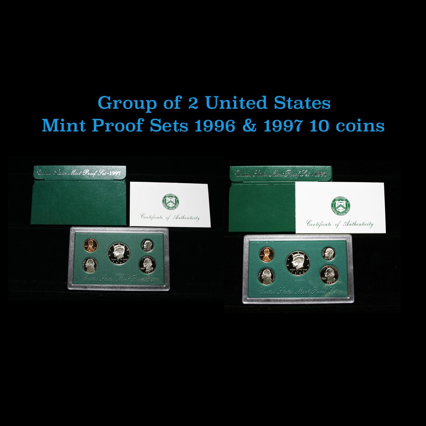 1996 & 1997 United States Mint Proof Set In Original Government Packaging. The 1996 Proof set includes 5 Very Deep Cameo Proof Coins in the original Mint Packaging and with the COA. A scarcer set. The 1997 Proof Set Includes 5 Very Deep Cameo Proof Coins in the original Mint Packaging and with the COA. A scarcer set and much higher priced set.