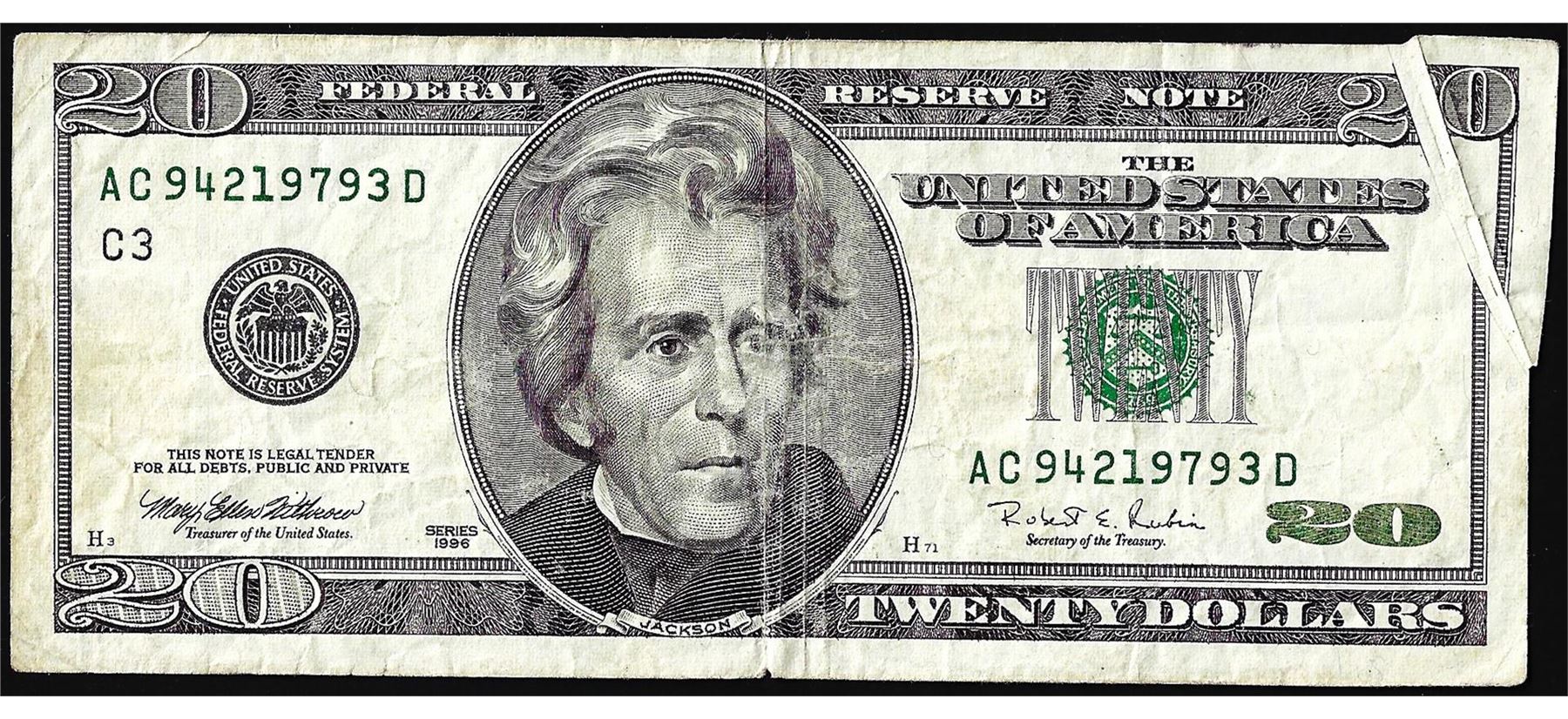 One 1996 $20 Federal Reserve Gutter Fold ERROR Note.
