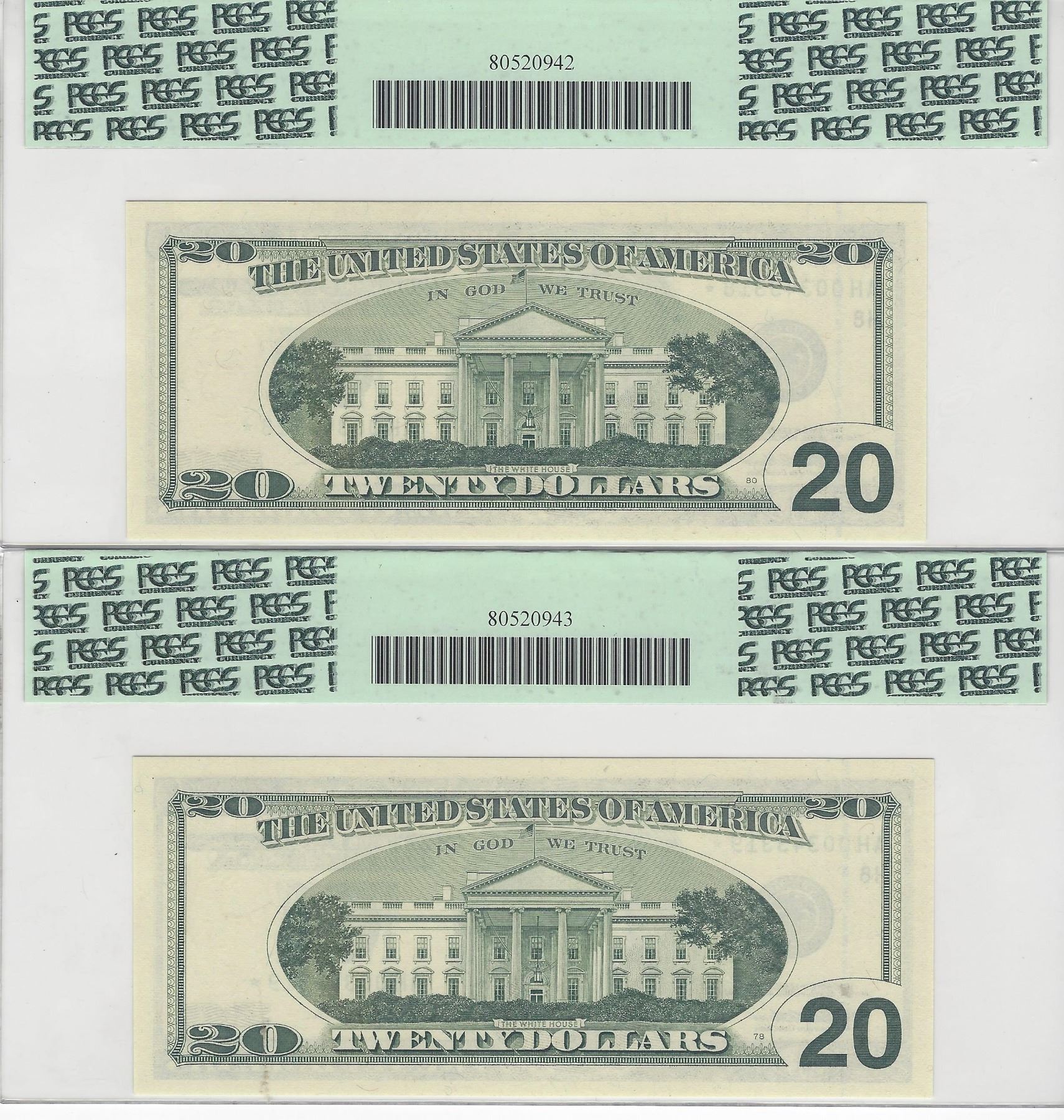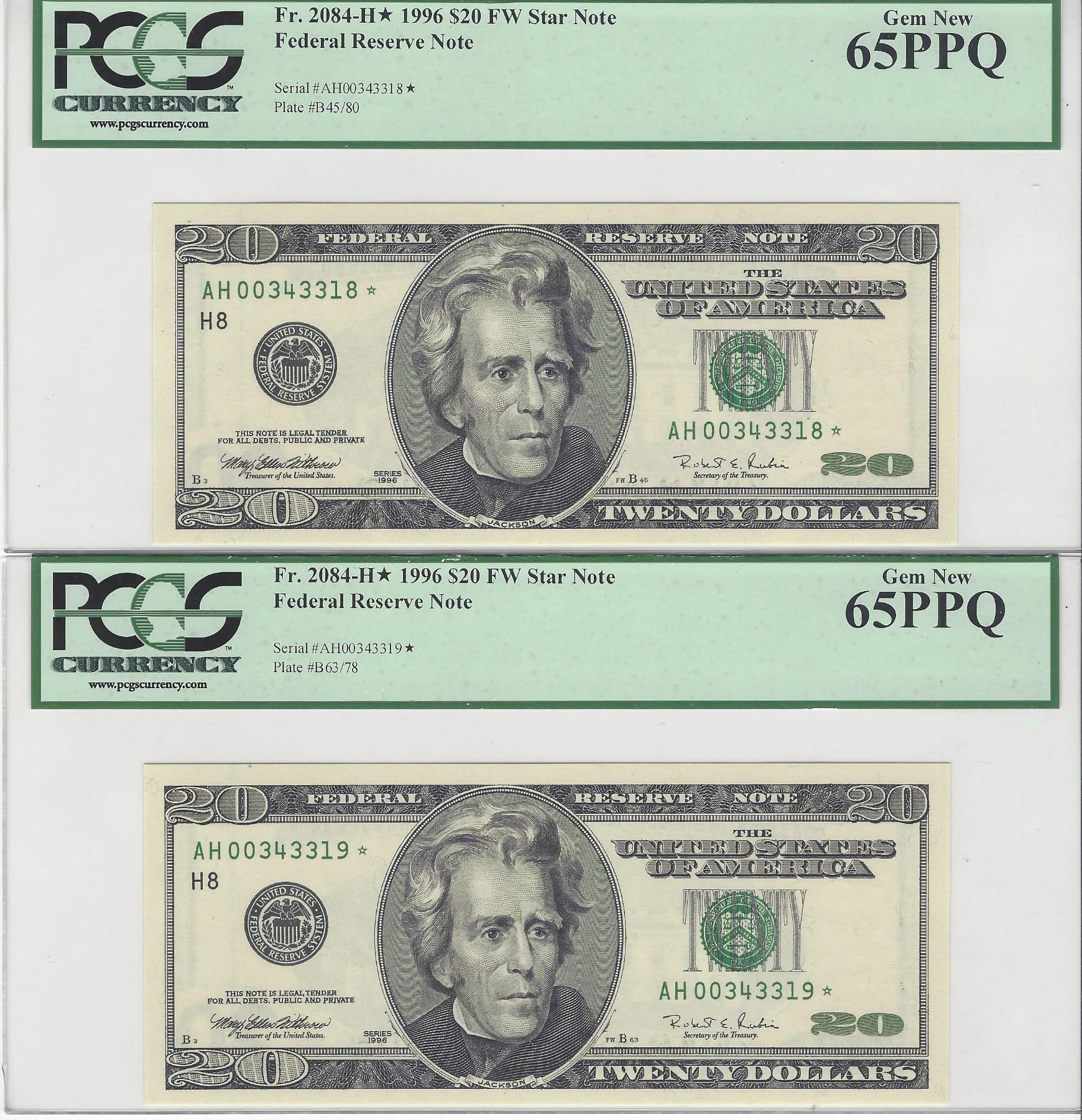 One Pair of 1996 $20 Federal Reserve STAR Notes PCGS 65PPQ.