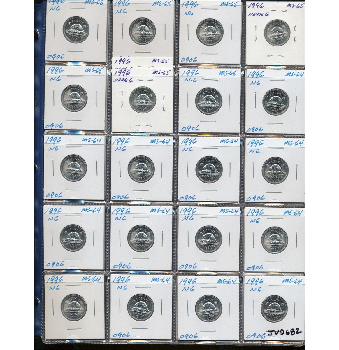 1996 5¢ Partial Rolls; includes 1996 Near(41) pieces all in 2x2's. MS63 to MS65 for grades. Should be viewed.