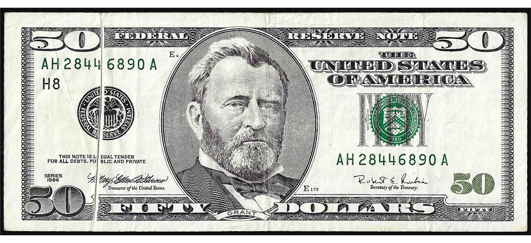 One 1996 $50 Federal Reserve Note Gutter Fold Error.