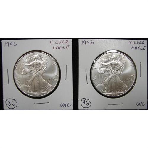 PAIR OF 1996 AMERICAN EAGLE SILVER DOLLARS. Unc.