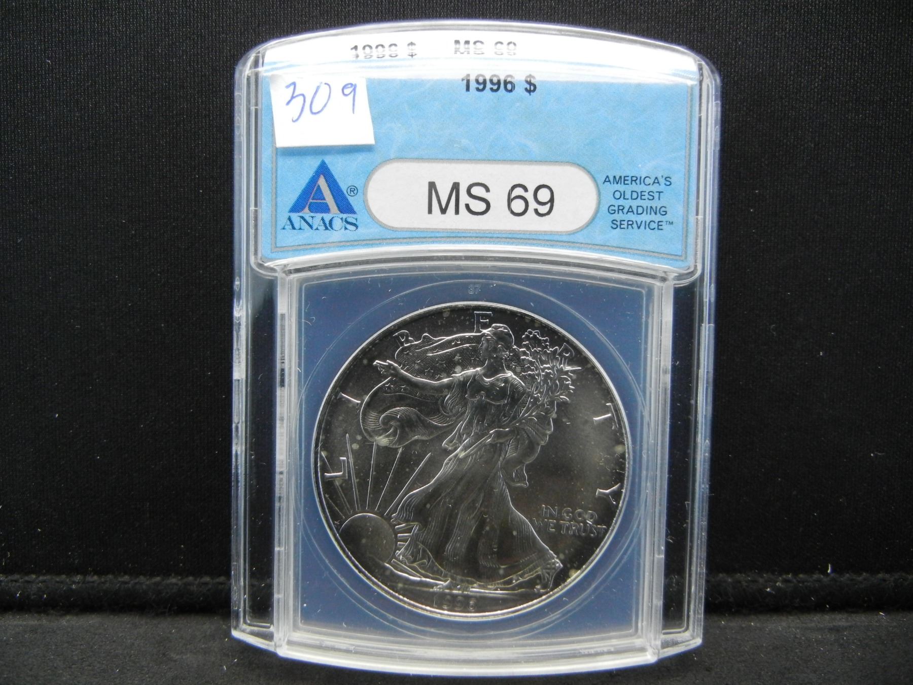 1996 American Silver Eagle ANACS MS69 Awesome Colors Key Date