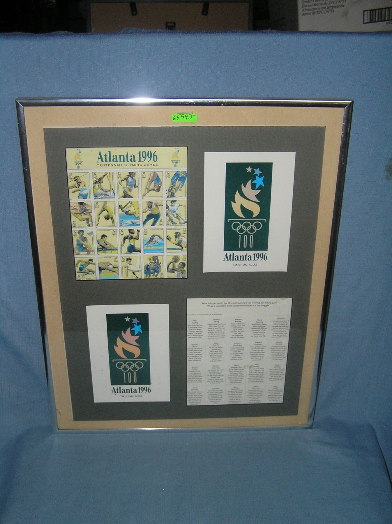 1996 Atlanta Olympics framed diorama of postage stamps and collectibles est. value $75.00-$80.00