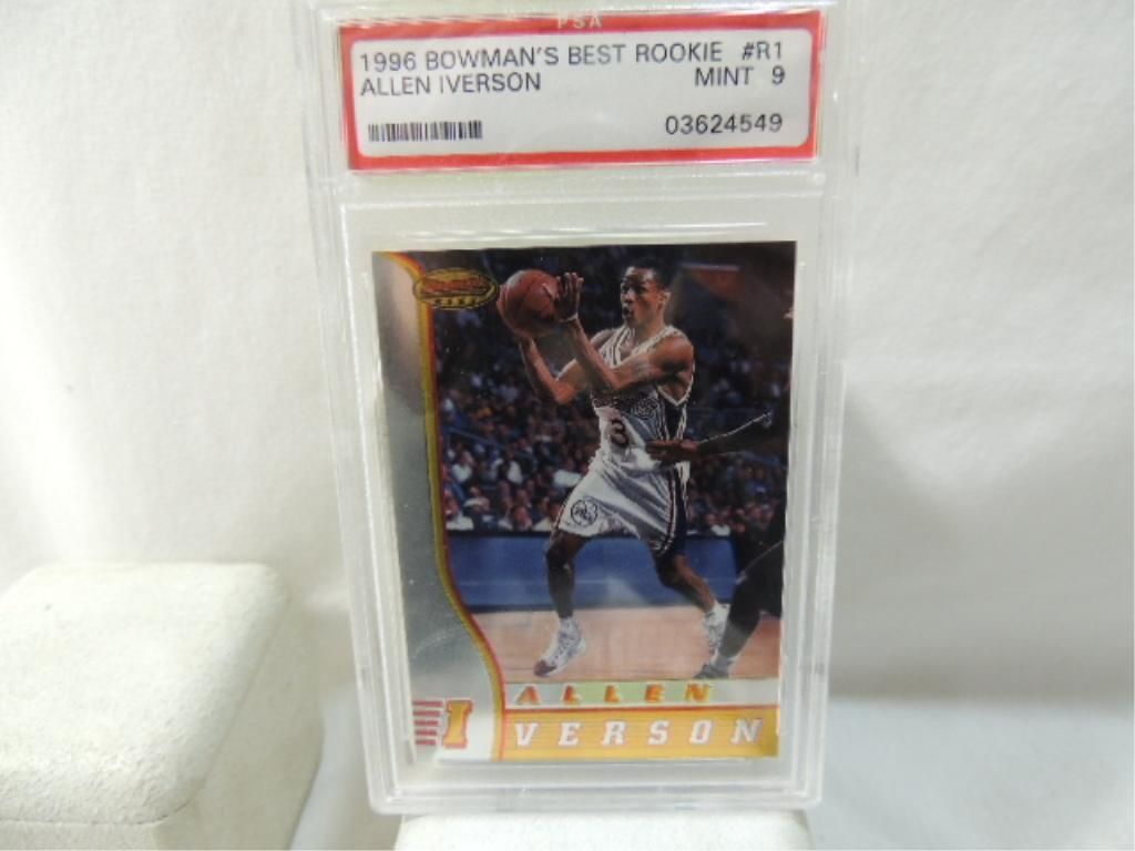 1996 BOWMAN BEST ROOKIE ALLEN IVERSON BASKETBALL PLAYER CARD # R1 GRADED MINT 9 BY PSA