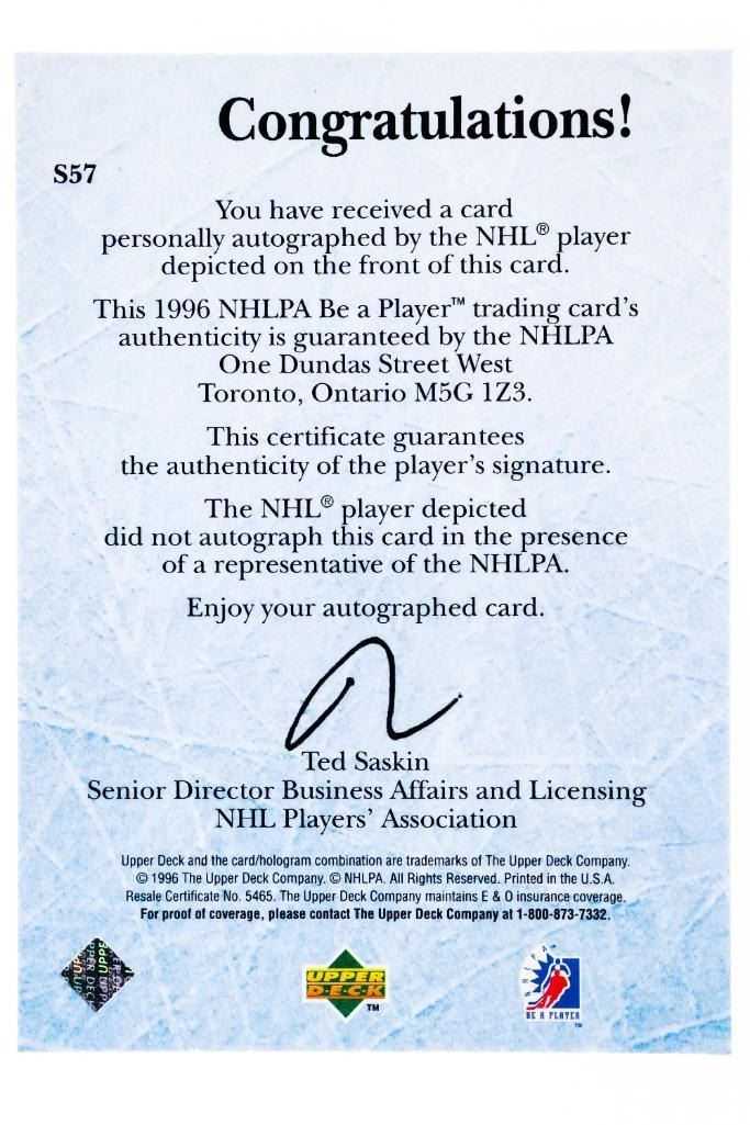 1996 Be A Player Card - Garth Snow - Autographed Card-84856
