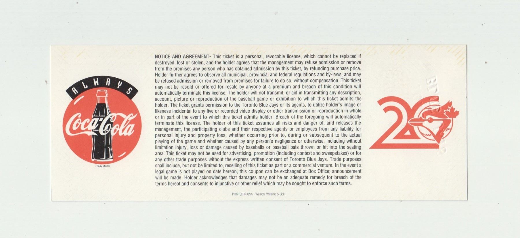 1996 Blue Jays vs Angels 20th Opening Day Ticket