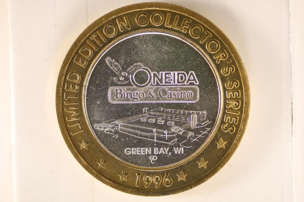 CASINO BRILLIANT UNC IN HARD PLASTIC CAPSULE (CRACKED), LIMITED EDITION GREEN BAY, WISCONSIN