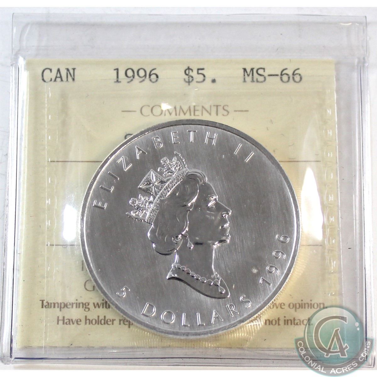 1996 Canada 1oz Fine Silver Maple Leaf *Key Date* ICCS Certified MS-66 (TAX Exempt)