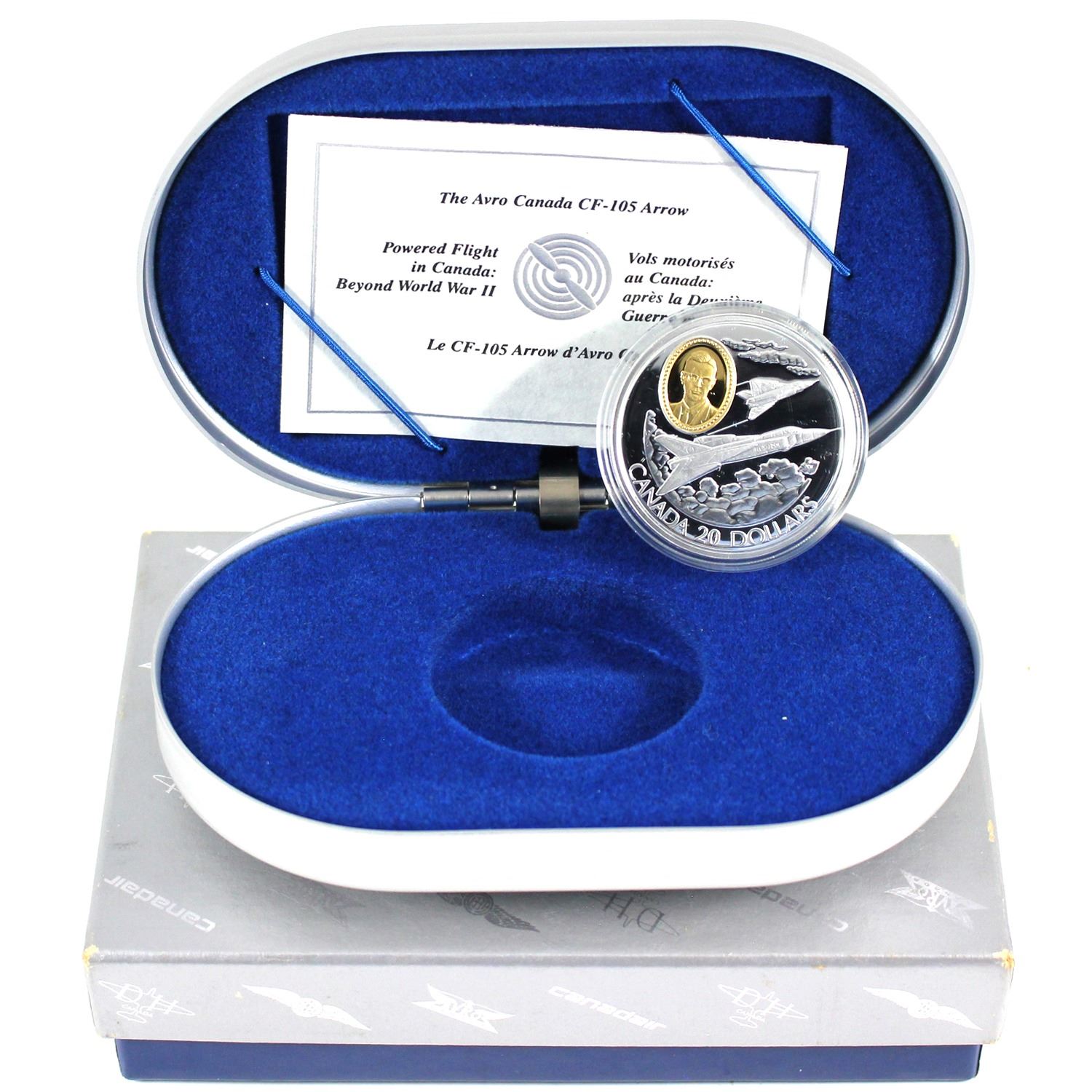 1996 Canada $20 Aviation - Avro Arrow CF-105 Sterling Silver Coin with all original mint packaging. (scuffed outer box)