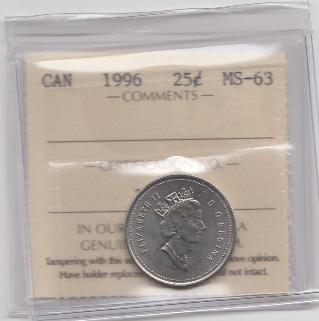 1996 Canada 25 Cent ICCS MS63