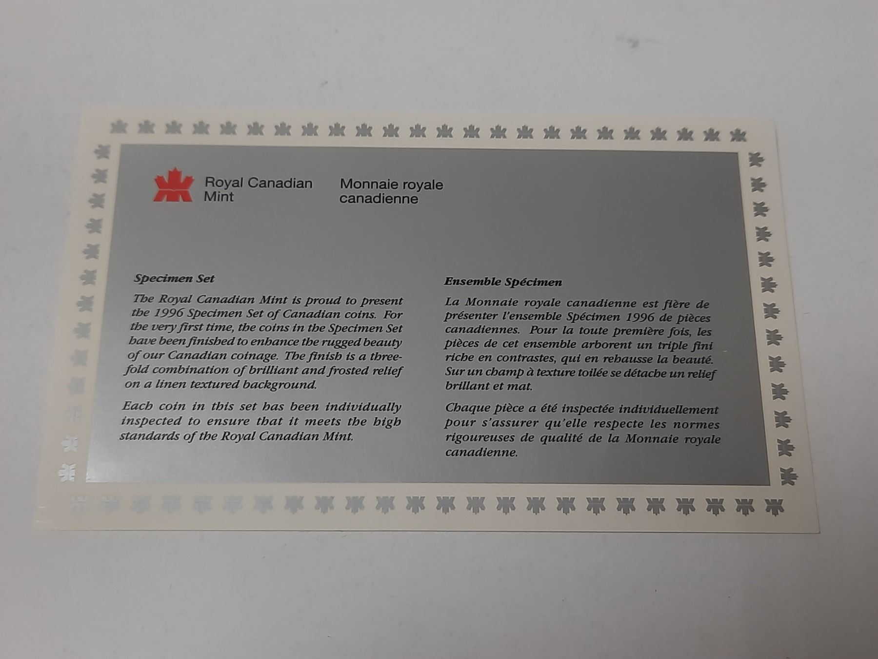 1996 Canada Specimen Set - Royal Canadian Mint.