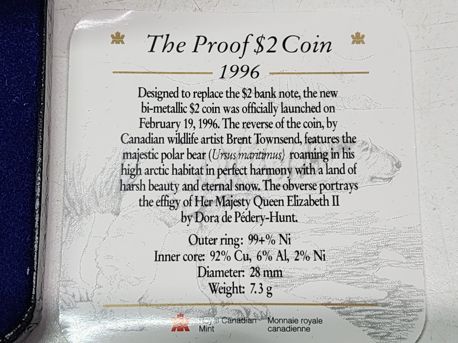 1996 Canadian 2 dollar proof coin