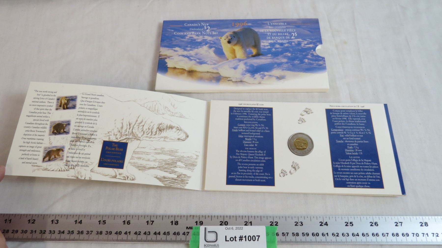 1996 Canadian Uncirculated $2 Coin and Bank Note Set