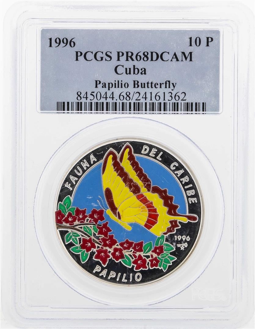 One 1996 Cuba 10 Pesos Silver Coin Papilio Butterfly PCGS PR68DCAM. PCGS Graded.