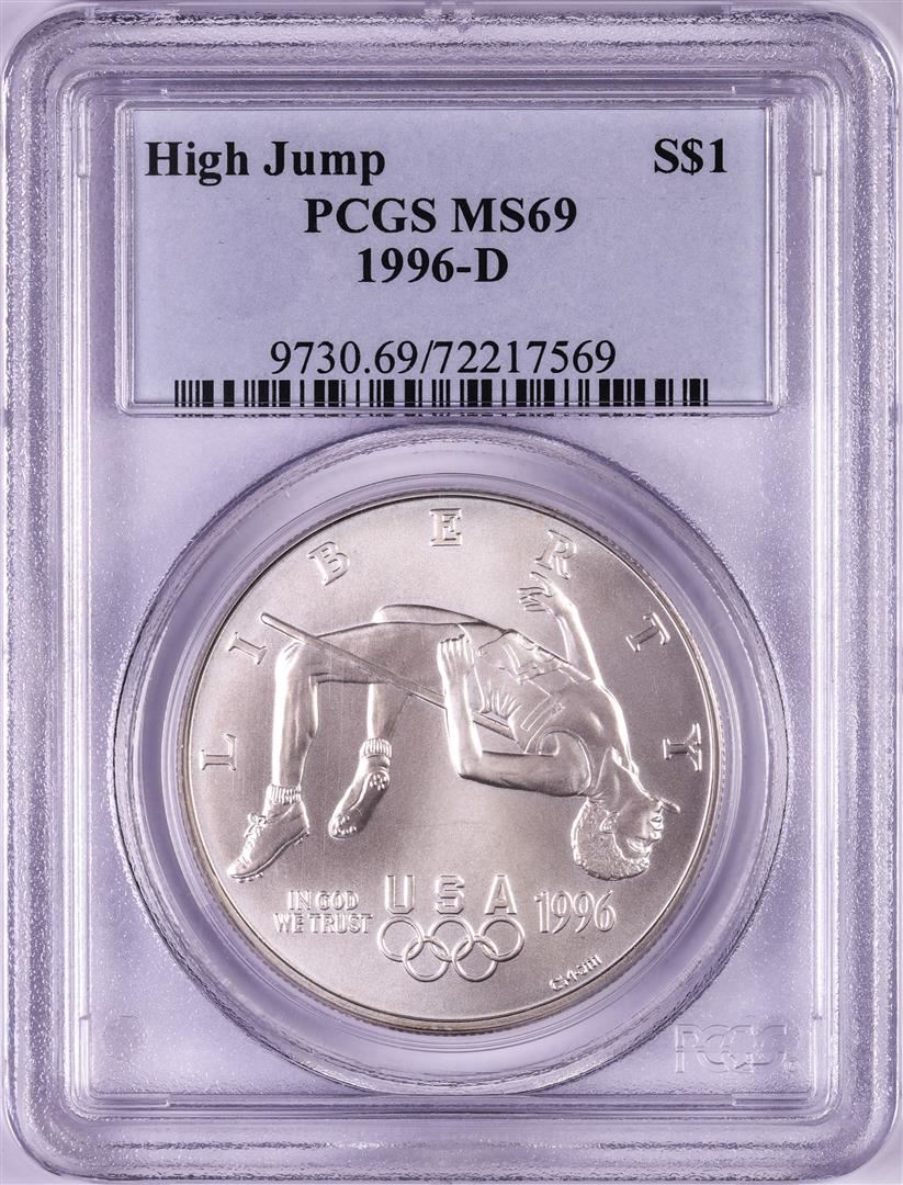 1996-D $1 Olympics High Jump Commemorative Silver Dollar Coin PCGS MS69