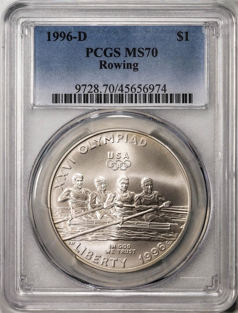 One 1996-D $1 Olympics Rowing Commemorative Silver Dollar Coin PCGS MS70. PCGS Graded.