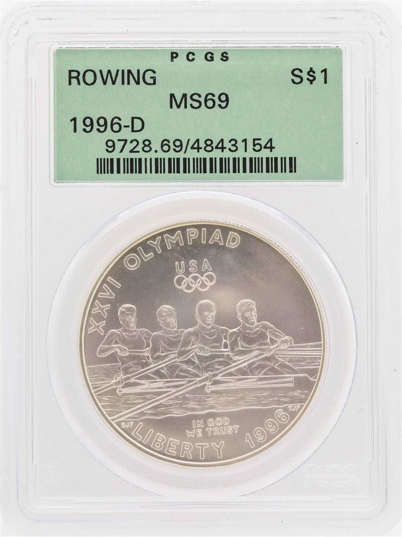 One 1996-D $1 Rowing Olympic Commemorative Silver Dollar Coin PCGS MS69. PCGS Graded.