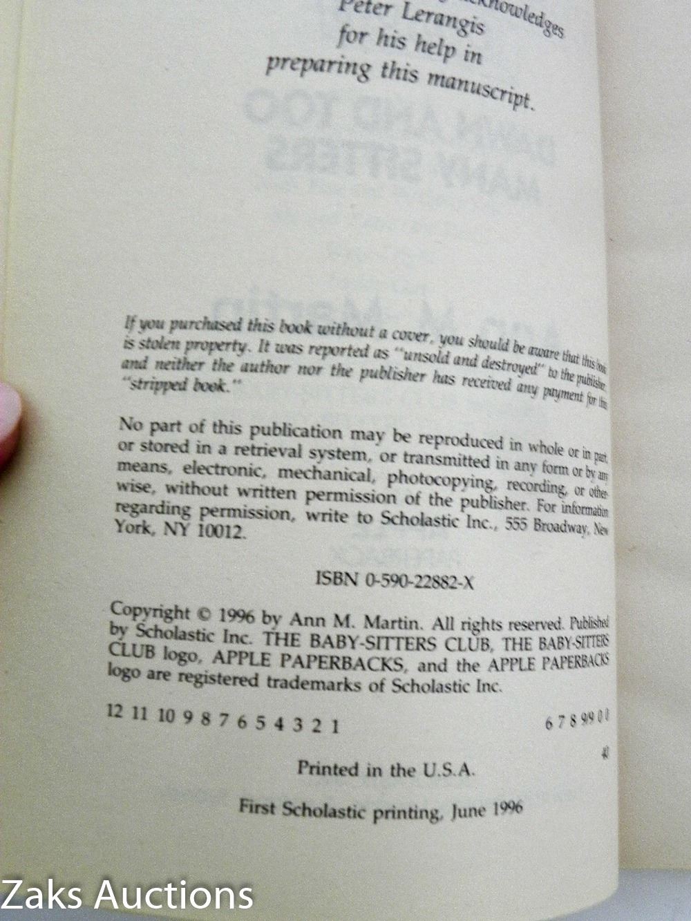 1996 DAWN AND TOO MANY SITTERS - ANN M. MARTIN. SOFTCOVER. PART OF THE BABY-SITTERS SERIES, NO 98