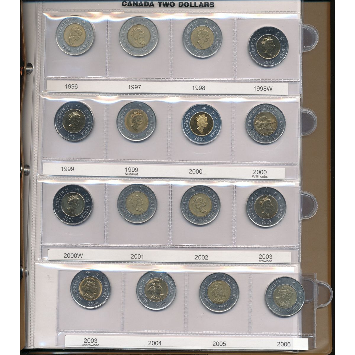 1996-Date $2 Collection; includes 26 pcs up to 2012. Mainly UNC to PL/Proof. Does include a few circ issues. Housed in Uni-Safe Album UNC to BU.