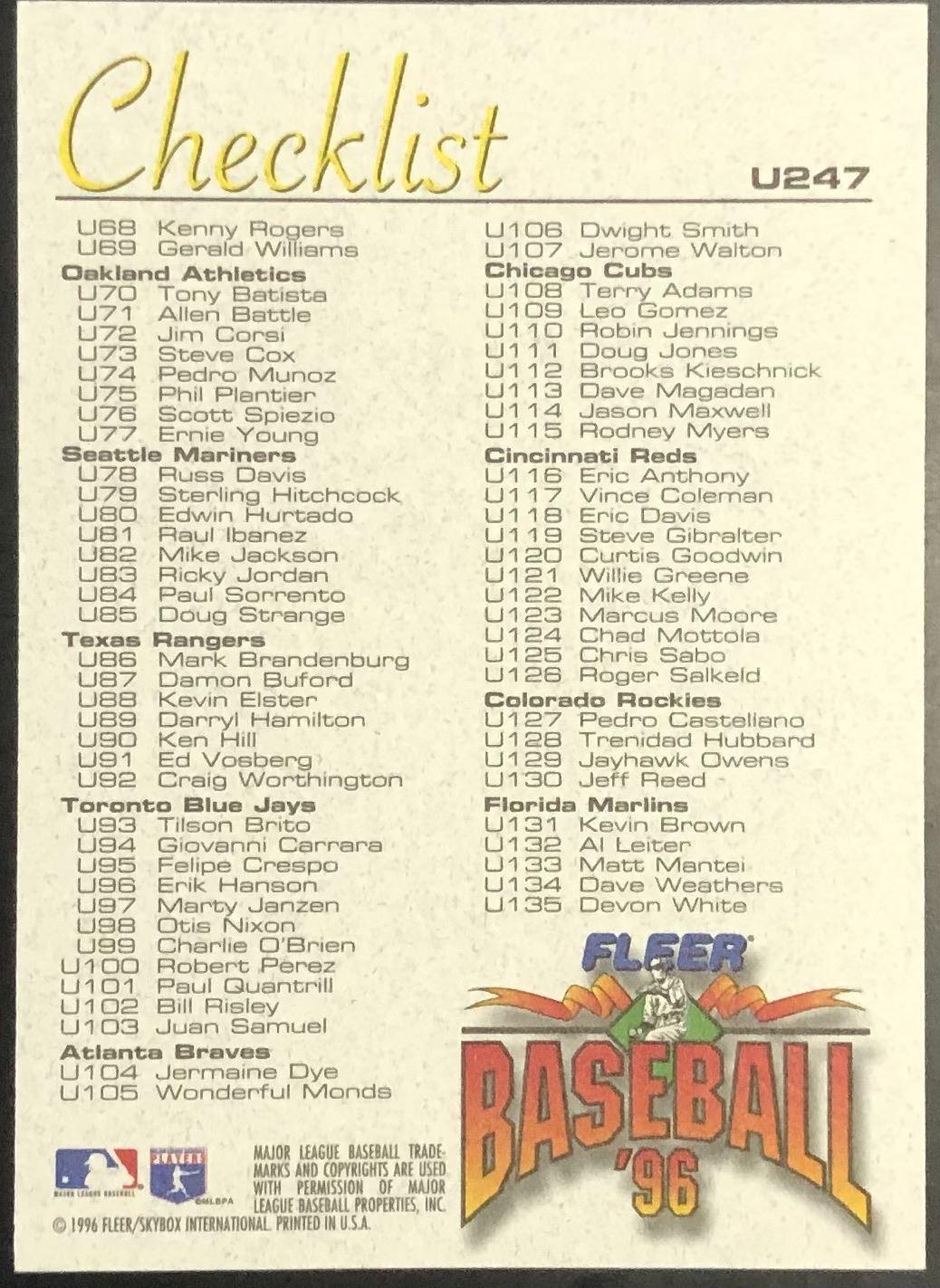 Card #U247 MLB, baseball, hall of fame