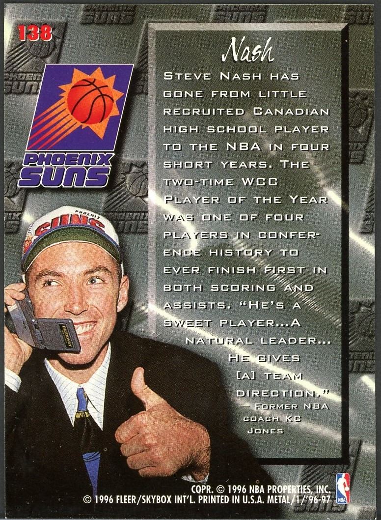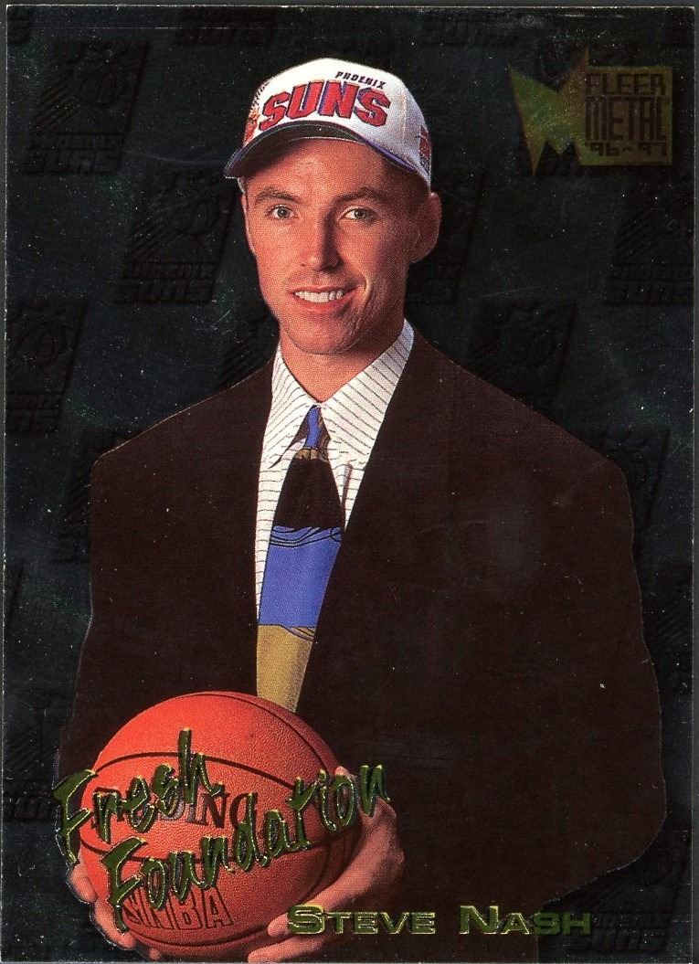 1996 Fleer Metal fresh foundation rookie card of Canadian Basketball Hall of Famer Steve Nash. Card is in EX-NM condition.