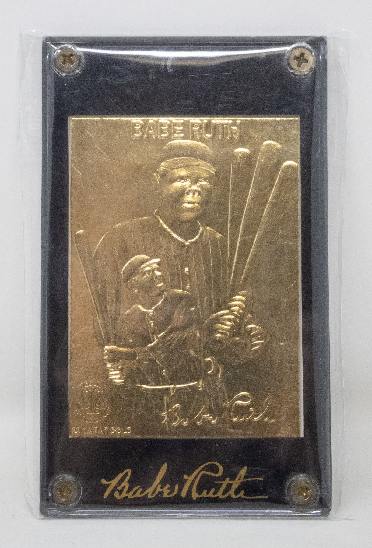 SN: 002201. GOLD CARD HIGHLIGHTS BABE RUTH'S LIFETIME STATS. "THE BABE" ALSO HAS GOLD SCRIPT SIGNATURE ON CASE.